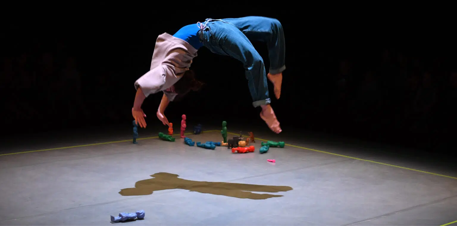 Par la marionnette, le mouvement acrobatique et la danse, la pièce interroge en douceur l’éducation d’un enfant, la construction inconsciente de la virilité et du patriarcat, et exprime le désir d’inventer un nouveau vivre ensemble.
